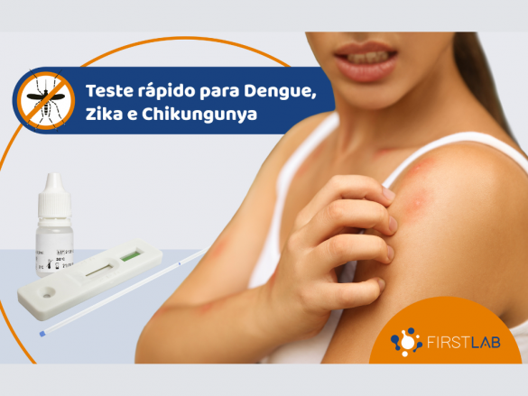 Para auxiliar no diagnóstico, na diferenciação das doenças e no controle epidemiológico, a FirstLab conta com testes rápidos para a determinação qualitativa de dengue e chikungunya. Com resultado preciso, o teste fica pronto em apenas 15 minutos.