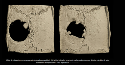 Segundo o professor, esse fato indica o quanto o tratamento de defeitos ósseos em portadores de doenças sistêmicas é complexo: “Esses resultados ressaltam que o tratamento de defeitos ósseos pela terapia celular é ainda mais desafiador em pacientes acometidos por essas doenças (diabéticos e hipertensos), mas é viável, uma vez que bons resultados foram obtidos com a terapia celular em animais com osteoporose”.