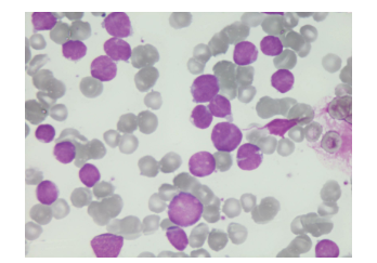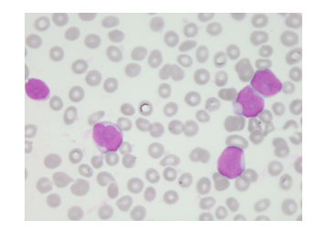Outros blastos possuem o núcleo denso ou cromatina nuclear condensada ou fechada, típicas de linfoblastos, com pouco citoplasma. Estas células são vistas no sangue periférico de pacientes com leucemia linfoblástica aguda (LLA).