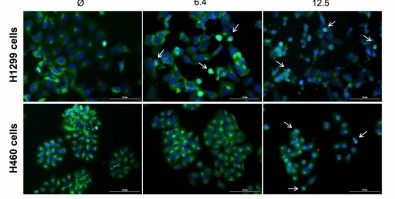 Imagens mostram o efeito do composto sobre o ciclo celular em duas linhagens de câncer de pulmão (crédito: Miranda, L.B.L., Lima, K., Coelho-Silva, J.L. et al./Scientific Reports)