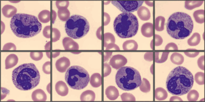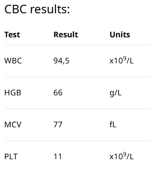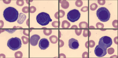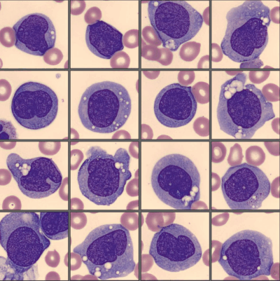 Paciente de 2 anos, sexo feminino, foi levada ao pediatra por seus pais devido a febre, fadiga, fraqueza, perda de peso e falta de ar. Eles também notaram pequenas manchas vermelhas na pele e hematomas com facilidade. O pediatra solicitou um hemograma completo. A análise do esfregaço foi realizada no CellaVision® DM-9600:
