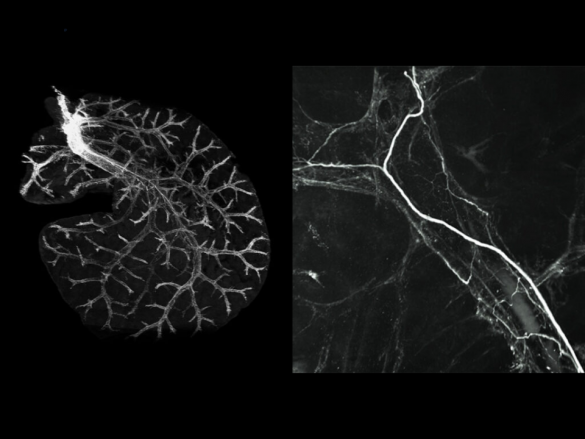 Antes (esquerda) e depois de fígado clareado, submetido a marcador fluorescente – Foto: reprodução do artigo