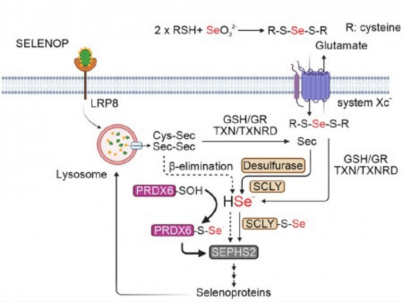 Recentemente, uma equipe internacional de pesquisadores anunciou a descoberta de uma nova via para o metabolismo da selenocisteína, mediada pela enzima antioxidante peroxirredoxina 6 (PRDX6). O estudo também descreveu uma associação entre níveis elevados de PRDX6 e um subtipo altamente agressivo de neuroblastoma, sugerindo que esse mecanismo pode ser explorado para induzir a ferroptose em células tumorais.