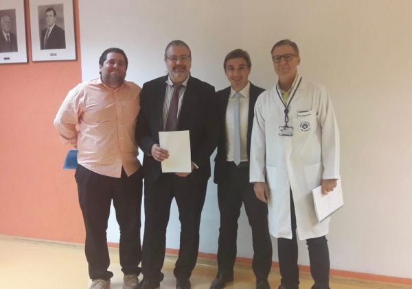 Direita para esquerda: Profº Dr Leonardo (orientador), Profº Tobias Machado (avaliador FMABC), Wilmar Azal Neto (mestrando), Profº Dr. Ubirajara Ferreira (avaliador UNICAMP).