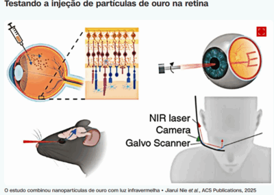 A nova técnica utiliza minúsculas partículas de ouro injetadas na retina que, ao receberem luz infravermelha, aquecem levemente e estimulam as células nervosas ainda funcionais. Contornando os fotorreceptores, o processo reativa o caminho neural da visão em pessoas com as demais células retinianas intactas.