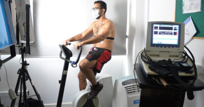 Imagem – Testes aferiram pressão arterial e frequência cardíaca dos participantes antes, durante e depois do exercício, variando a intensidade luminosa para verificar os efeitos no organismo – Foto: Paula Bassi/EEFE