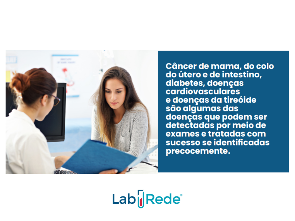 Os exames de rotina variam de acordo com as diferentes fases da vida e dependem de vários aspectos como vida sexual, ocupação e relatos de sinais e sintomas. São exemplos de exames importantes para a saúde da mulher e possibilitam diagnóstico precoce, prevenção de doenças e complicações: colpocitologia oncótica (Papanicolau) para o câncer do colo uterino; sorologia para HIV, sífilis, hepatite C e B, infecções sexualmente transmissíveis, que podem ser silenciosas e causar doenças crônicas; glicemia de jejum, dosagem de colesterol e triglicerídeos para avaliação metabólica e cardiovascular; TSH para triagem de disfunções da tireóide; pesquisa de sangue oculto nas fezes para investigação do câncer do intestino, indicado a partir de 45 anos.
