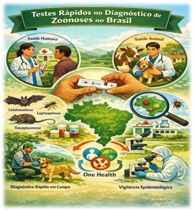 As zoonoses representam um dos principais desafios da saúde pública brasileira, em razão de sua ampla distribuição geográfica, impacto socioeconômico significativo e da estreita relação entre a saúde humana, animal e ambiental. Nesse contexto, os testes rápidos têm se destacado como ferramentas estratégicas para o diagnóstico precoce, a vigilância epidemiológica e o controle dessas enfermidades. A incorporação dessas tecnologias reforça o conceito de Saúde Única (One Health), fundamental para o enfrentamento de doenças de origem animal no país.